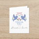 Célébrez le chemin vers le mariage avec une atmosphère de grâce et d'appréciation avec la carte de remerciement "Love Birds" pour la fête de mariage. Nichés dans une vignette romantique, deux oiseaux bleus s'unissent à côté d'un cœur illustré avec amour, symbolisant la camaraderie et l'affection. Cette carte incarne l'esprit joyeux de vos prochains noces et offre une avenue parfaite pour exprimer votre gratitude à vos amis et à votre famille. Avec son mélange de charme classique et de design moderne, c'est le cadeau idéal pour exprimer vos remerciements pour votre fête de mariage, personnalisable pour refléter votre histoire d'amour unique.