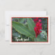 Fleur simple du plante hawaïen de gingembre rouge, photographiée dans Bucerias, le Mexique et disposée avec les mots "Merci !" pour faire un carte de remerciements agréable