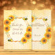 Une carte de remerciements pour une Fête des mariées d'été. Des tournesols rustiques jaunes et oranges, colorés par l'eau, sont disposés sur un motif en nid d'abeille. Avec un cadre géométrique en faux or. Avec le texte : Merci et Epouse à Bee écrit avec un script de style manuscrit moderne. Personnalisez et ajoutez le nom de la mariée. Lettres Brown. Retour : Votre mot de remerciement et votre nom.