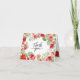 Design élégant avec des fleurs rouges profondes et de la verdure tombante avec Merci. À l'intérieur, il y a un motif floral similaire dans la partie inférieure de la carte.