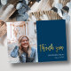 Carte De Remerciements Fun Script Moderne Bleu Simple Photo Graduation