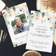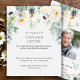 Roses blanches et carte de remerciements funéraire du feuillage d'eucalyptus. Un élégant message "Merci" funéraire, qui peut être personnalisé avec une photo de votre être cher. Tout le texte est modifiable, envoyez votre amour et merci à la famille et aux amis qui vous ont soutenu pendant votre deuil.