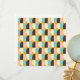 Geometric pattern with overlapping half-circles in teal, cream, brown, and peach on an orange background, creating a vibrant and retro feel.