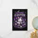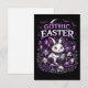 A charming Gothic Easter scene blends dark fantasy and cute whimsy, featuring a wide-eyed bunny amid skulls, candles, and enchanted purple eggs.