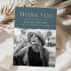 Carte de remerciements moderne de graduation avec "Merci" en haut en lettres modernes blanches avec un bord déchiré couleur ardoise en bordure de la photo senior du diplômé. Personnalisez le carte de remerciements photo en ajoutant le nom du diplômé, le nom de l'école et l'année de remise des diplômes. L'arrière de la carte offre de l'espace pour votre message dactylographié ou manuscrit.