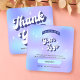 Moderne super business merci pour la carte de commande dans les couleurs bleu holographique et violet, avec des polices rétro et une mise en page tendance avec espace pour votre logo et les liens de médias sociaux. Ajoutez la touche finale à vos commandes avec ce merci tendance pour les inserts de paquet d'achat design.