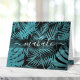 Carte De Remerciements Mahalo turquoise feuille de palme tropicale script