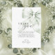 Carte de Remerciement pour Mariage avec un Nœud Vert. Ce design élégant présente un doux nœud vert sauge qui symbolise le beau voyage du « nouer le nœud », ajoutant une touche significative à votre célébration, parfait pour une future mariée qui valorise à la fois la sophistication et la simplicité.