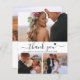 Budget, Minimaliste Moderne Élégant "Merci" Script 3 Photo Collage Mariage Merci personnalisé abordable carte mince à petit budget. Élégant modèle mariage avec quatre photos sur le devant et une photo sur le dos. ***VEUILLEZ NOTER! *** LE DOCUMENT BUDGÉTAIRE/VOL EST EN PAPIER MINCE. *** METTRE À NIVEAU LE PAPIER POUR UN PAPIER PLUS ÉPAISSEUR. *** Avec le texte "Merci" dans une écriture manuscrite cursive en lettres de typographie police avec la queue d'essoufflement et petit coeur d'amour en noir et blanc. Personnalisez votre nom personnalisé et un message de remerciement. Si vous préférez écrire votre note à la main, supprimez simplement l'exemple de texte pour gagner de l'espace. Excellent choix pour un mariage à petit budget.