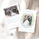 Laissez-vous tenter par l'allure durable de nos élégants mariages boho chic, merci aux cartes photos, ornés d'une couronne de fleurs délicates d'aquarelle bleu clair. Avec deux clichés captivants des jeunes mariés, ces cartes dégagent grâce et style. Retournez à l'arrière pour révéler un message de remerciement sincère, en transmettant la joie et la gratitude que nous tenons pour votre présence lors de notre journée spéciale.