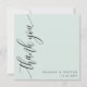 Express votre gratitude avec une touche d'élégance moderne. Ce carte de remerciements vert menthe pastel est doté d'une simple police de script de calligraphie minimaliste verticale, créant un message intemporel et chaleureux. Le design épuré garde l'accent sur votre appréciation sincère, faisant une impression durable sur vos invités. Complétant parfaitement votre thème mariage minimal, cette carte polyvalente se marie sans effort avec une esthétique romantique, chic, moderne ou sophistiquée. Personnalisez-le avec vos noms et un message sincère pour créer un remerciement vraiment spécial pour vos proches.