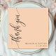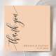 Express votre gratitude avec une touche d'élégance moderne. Ce carte de remerciements de pêche doux est doté d'une police de script de calligraphie minimaliste verticale simple, créant un message intemporel et sincère. Le design épuré garde l'accent sur votre appréciation sincère, faisant une impression durable sur vos invités. Complétant parfaitement votre thème mariage minimal, cette carte polyvalente se marie sans effort avec une esthétique romantique, chic, moderne ou sophistiquée. Personnalisez-le avec vos noms et un message sincère pour créer un remerciement vraiment spécial pour vos proches.