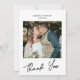 Une carte de remerciements de mariage simple mais élégante que vous pouvez personnaliser avec votre propre photo. Vous pouvez également personnaliser le message au dos de la carte.