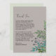 Dites "merci" avec style en utilisant ce carte de remerciements botanique élégant et rustique. Parfait pour un mariage extérieur ou un thème de forêt rustique, ce carte de remerciements présente de beaux feuillages verts, des baies et de petites branches contre un arrière - plan gris ardoise pâle. Cette carte est idéale pour exprimer votre gratitude à vos invités mariages d'une manière unique et remarquable. Les couleurs grises et les tons gris feutrés de la carte offrent un look intemporel et classique qui ne déroge jamais à son style.