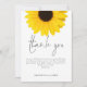 Carte de remerciements Mariage tournesol. Disponible numériquement ou imprimé. Une typographie informelle en noir pour le Merci de titre principal complétant le reste du texte que vous pouvez facilement personnaliser.