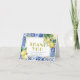 Cette élégante carte de remerciement pour un mariage présente un fond blanc avec des carreaux bleus de style méditerranéen, des fleurs et des citrons/citrus en aquarelle. Personnalisez-la selon vos besoins. Vous pouvez trouver des produits assortis dans ma boutique.