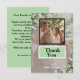 Exprimez votre gratitude avec une touche contemporaine en utilisant notre belle carte de remerciement de mariage photo mettant en vedette votre moment spécial et un design vert menthe rafraîchissant. Cette carte de remerciement de mariage unique combine la photographie personnelle avec un style moderne pour créer un remerciement mémorable pour vos invités de mariage.