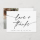 Modern Love and Thanks Script Heart Photo Mariage Carte de remerciements