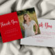 Une carte de remerciements moderne classique de graduation avec un thème simple rouge et blanc. La photo est à des fins de placement seulement et peut être remplacée par n'importe quelle photo de votre choix. Customisez le texte à l'avant et à l'arrière de la carte pour créer votre diplôme parfait merci. #graduationmerci #classof #lycée