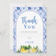 Mariage de citron jaune italien Carte de remerciements méditerranéenne carrelage et de la douche de nage à thème citron avec quelques roses blanches et un cadre décoratif.