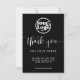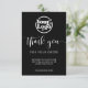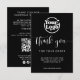 Customisez ce noir moderne et minimaliste "Business Logo Order Package Discount QR Code Black Carte de remerciements " pour l'emballage d'entreprise, avec un logo d'entreprise blanc, le message "Merci pour votre commande" dans un magnifique script, votre message personnalisé, un code de remise, un code QR scannable pour un examen de commande, et les poignées de médias sociaux (Instagram, Facebook, TikTok). Veuillez contacter le concepteur du magasin pour plus de personnalisation si nécessaire.