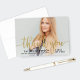 Le carte de remerciements de graduation plié élégant et élégant comporte une photo senior avec "merci" faux script de feuille d'or superposé. Personnalisez le texte personnalisé moderne avec le nom de votre élève, l'école et l'année de classe. Un message de remerciement personnalisé et / ou photo peut être ajouté à l'intérieur de la carte.