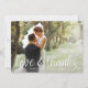 Un carte de remerciements mariage moderne conçu pour accueillir vos photos mariages horizontales ou orientées paysage préférées. "Amour et merci" apparaît en bas comme un texte blanc superposé dans un script manuscrit, avec vos noms sous. Ajoutez un message optionnel au dos à motif subtil en utilisant le champ fourni, ou supprimez l'exemple de texte pour ajouter votre propre message de remerciement manuscrit.