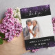 Un carte photo de Merci mariage moderne. Un arrière - plan noir décoré de faux parties scintillant violet brille. Personnalisez et ajoutez votre photo et merci note.