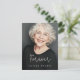 Pour toujours dans nos coeurs funérailles avec votre photo et le texte "éternellement dans nos coeurs" avec "éternellement" dans une police manuscrite de style script sur le devant. Ajoutez un message personnalisé à l'arrière.