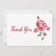 aquarelle traditionnelle d'un joli rose avec beaucoup de fleurs rouges, pétales et feuilles verts sur un carte de remerciements