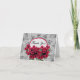 Une dentelle grise est l'arrière - plan d'un énorme bouquet de roses rouges autour d'un cadre rouge avec les mots "Merci !", créant un Carte de remerciements magnifique et démodé. L'intérieur est vide pour que vous personnalisiez avec votre propre message.