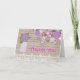 Carte de remerciements rustique de pot de maçon de pays avec les pots et les fleurs de maçon verts et pourpres pendant de la branche sur l'arrière - plan en bois.