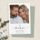 Ce coeur d'or moderne chic merci note dispose de calligraphie manuscrite avec vos noms dans la typographie serif élégante sous votre photo mariage préférée. Voici la version verte et blanche de la sauge poussiéreuse.