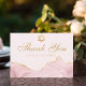 Une agate rose et or chic orne le côté de ce carte de remerciements Bat mitzvah moderne. Mazel Tov ! Customisez avec votre nom sous l'Etoile de David. De belles cartes parfaites pour une famille juive chic et élégante célébrant une fille appelée à la Torah.