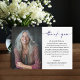 A simple thank you card features a sample message you can use or change to your own words over a photo of your loved one. Beautiful for custom thank you notes for your celebration of life, funeral or memorial. MATCHING items in our collection.