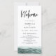 Cet ordre de service du programme de mariage comprend des eaux océaniques aquarelles et des palmiers avec une police manuscrite pointue. Utilisez ce programme pour détailler la chronologie du jour de mariage, le bios de la fête de la mariée et une note de remerciement spéciale. Ce programme est parfait pour une fête de mariage sur une île tropicale.