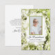 Remerciez vos invités de se souvenir de votre être cher après leur passage à leur Mémorial de la Fête de la Vie avec l'élégante Carte de remerciement à l'aquarelle verte Hydrangea Flower Funeral Sympathy Flat Flat Thank You Note Card. Cet élégant hommage à la mort fleurie et personnalisée vous remercie d'une photo florale peinte numériquement aquarelle de fleurs vert clair Annabelle hydrangea avec un arrière - plan blanc. Personnalisez-le avec une photo du défunt, des dates de naissance et de décès et votre message personnel au verso.
