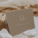 Vins intemporels Monogram Crest, plié carte de remerciements photo mariage. Caractéristiques, lignes de texte modèles pour vos noms et message personnalisé sur arrière - plan de couleur beige.