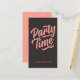 Conception moderne et graphique des billets de soirée avec lettrage "Party Time" sur le devant avec texte personnalisable. Autres combinaisons de couleurs disponibles.