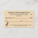 Ce carte de visite modifiable présente les détails d'un rendez-vous avec le vétérinaire avec l'illustration d'un chat dans le coin supérieur droit et d'un chien dans le coin inférieur gauche. Il y a un champ modifiable pour plus d'informations au verso. Le texte est modifiable, allez-y et changez les détails ainsi que le style, la taille et la couleur de la police. La couleur arrière - plan des deux côtés peut aussi être changée. Ce carte de visite moderne polyvalent et modifiable peut être utilisé pour toute entreprise de services animaux : vétérinaires, toiletteurs, maîtres-chiens, etc. Profitez de votre nouvelle carte de rendez-vous clinique vétérinaire modifiable!