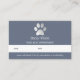 Carte de rendez-vous empreinte de patte en argent bleu.