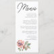 Cette carte de menu à l'aquarelle florale rose et mauve romantique est le design parfait pour compléter un mariage élégant et sophistiqué. Avec de superbes fleurs à l'aquarelle de rose vintage, dans des teintes de rose, de pêche, de sauge, d'olive et de sarcelle, elle est sûre de compléter le look que vous désirez.