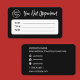 Carte de rendez-vous en noir et blanc pour rappeler aux clients quand leur prochain rendez-vous est. Cette conception simple a des contacts physiques pour votre entreprise ainsi que des contacts virtuels de votre présence sur les médias sociaux. L'autre partie dispose d'un espace pour les détails de la date et de l'heure du prochain rendez-vous client, ainsi que de l'identité de la personne avec laquelle il se trouve, le cas échéant. Il y a aussi un logo réservé pour vraiment le personnaliser.