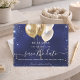 Un rendez-vous à ne pas manquer pour une fête d'anniversaire pour les 18 ans (ou tout autre âge). Un fond irrégulier bleu marine. Décoré de paillettes bleues et faussement dorées et de ballons dorés. Le texte : Save the Date est écrit avec un grand style de lettrage à main levée tendance.
