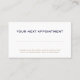 Assurez-vous que vos clients ne manquent jamais une réunion avec nos cartes de rappel de rendez-vous professionnels simples. Cette carte personnalisable est idéale pour les avocats, les cabinets d'avocats, les planificateurs immobiliers, les conseillers financiers et toute entreprise de services professionnels. Le design minimaliste offre un grand espace pour les détails essentiels, tandis que la typographie classique respire le raffinement et la confiance. Que vous soyez en droit, en finance ou dans d'autres services professionnels, cette carte polyvalente peut être adaptée à l'identité unique de votre marque. Offrez-vous un design qui reflète votre engagement envers l'excellence et un service personnalisé.