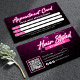 Ces élégantes cartes de rendez-vous en noir et rose sont conçues pour créer une impression durable. Le subtil motif hexagone ajoute une touche moderne, complétée par un script de néon rose vif. Inclure toutes vos informations de contact essentielles et suivre facilement les rendez-vous avec des champs dédiés. Le design professionnel et propre des cartes reflète l'attention portée aux détails de votre marque, ce qui donne à vos clients un sentiment d'estime et de protection. N'oubliez pas d'ajouter votre code QR unique pour un accès en ligne instantané. Améliorez votre expérience de salon dès aujourd'hui !