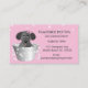Cartes de visite mignons pour les toiletteurs de chiens. Faites remarquer votre entreprise avec ce chiot dans une baignoire avec bulles. Arrière - plan rose clair avec lumières et bulles tout autour.