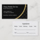 C'est un modèle chic de carte de visite de dentiste dans le noir et la couleur d'or avec le motif de dents dans la disposition de modèle des textes d'arrière - plan et de classique que vous pouvez customiser en ligne. Conçu pour un dentiste de famille, une pratique en matière de groupe, ou un chirurgien-dentiste avec la carte de rendez-vous du revers se servant des deux côtés de vos cartes.
