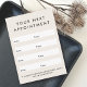 Cartes de rendez-vous modernes et neutres avec champs modèles pour vos coordonnées et logo sur le dos. La police, la couleur de police et la couleur arrière - plan peuvent être modifiées avec l'outil de conception.