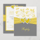 Cette carte de réponse de mariage florale jaune, grise et blanche romantique et chic comporte un ruban jaune IMPRIMÉ avec des coeurs joints en diamants et une broche en faux strass jaune qui correspond à l'invitation de mariage présentée ci-dessous. Tout le texte et le choix du papier sont personnalisables. ***VEUILLEZ NOTER qu'il n'y a pas d'éléments en relief sur cette carte. Tout est imprimé à plat. ***VEUILLEZ NOTER que si vous modifiez la police ou la taille de la police, cela peut modifier la façon dont votre invitation s'imprime. Il s'imprimera tel que vous le voyez sur votre moniteur, donc si vous avez des problèmes d'alignement ou de taille, veuillez me contacter pour obtenir de l'aide. Je ne verrai pas votre invitation une fois que vous l'aurez commandée, et Zazzle ne modifiera RIEN